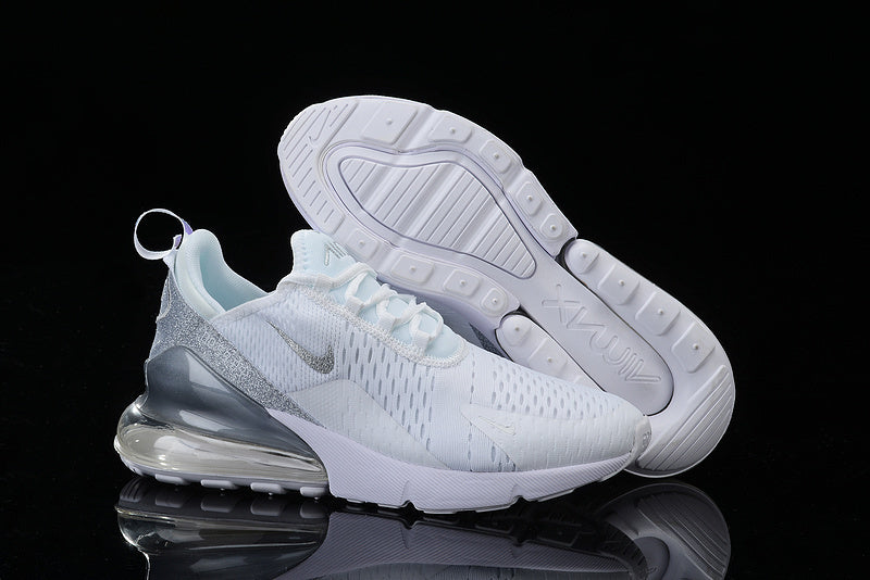 Der Nike Air Max 270 ist ein leichter, bequemer Sneaker für den Alltag. Auf dem Foto siehst du eine cleane Farbkombination in Weiß mit grauen Details. Das wirkt sportlich, aber auch schlicht genug, um ihn jeden Tag zu tragen. Die Form ist modern, mit einer etwas höheren Ferse und der typischen, großen Air Einheit im Fersenbereich. Genau dieses Detail macht den Schuh sofort erkennbar und sorgt für ein weiches Laufgefühl, vor allem beim Gehen in der Stadt oder wenn du lange auf den Beinen bist.